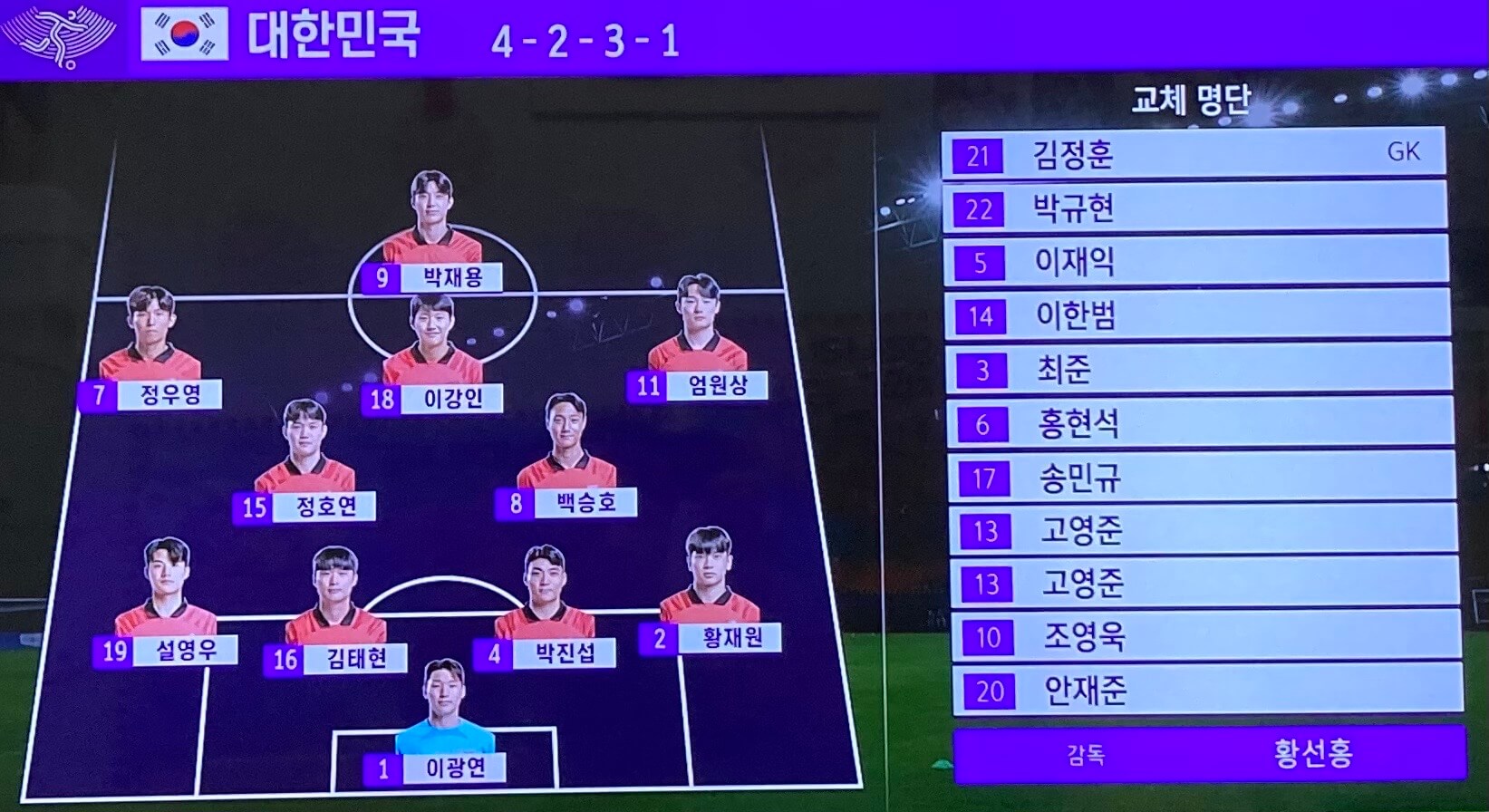 16강전 포메이션